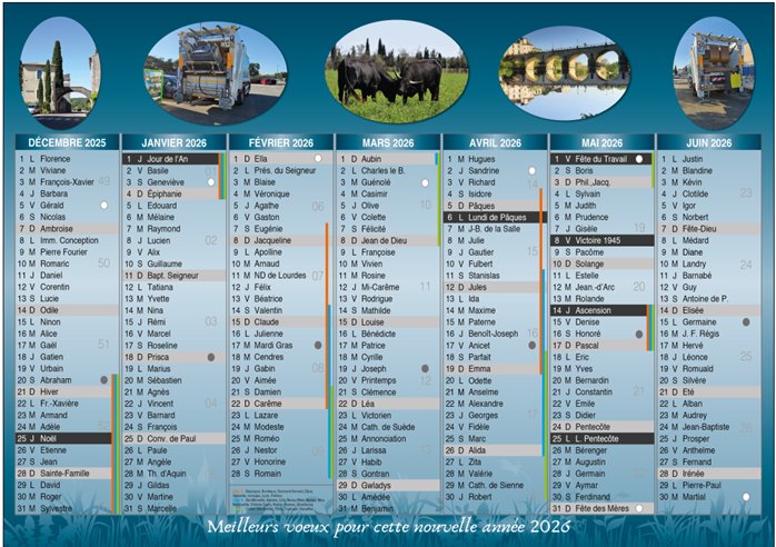 Joint un modèle du calendrier qui est présenté aux usagers en porte-à-porte