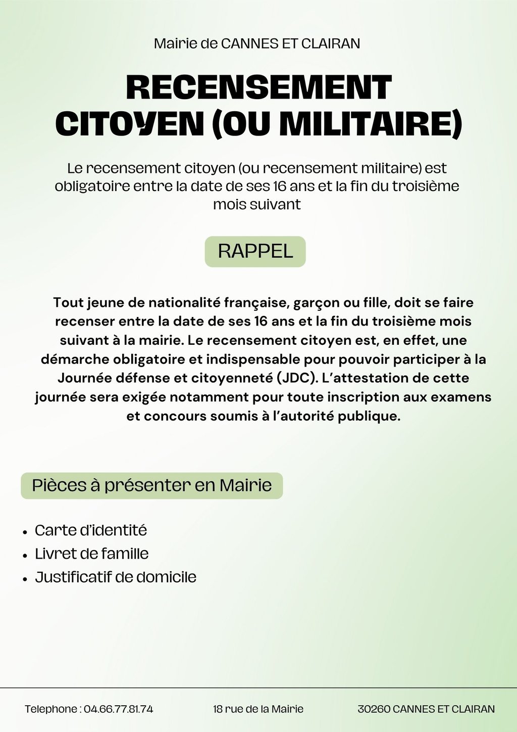 RECENSEMENT CITOYEN (OU MILITAIRE)